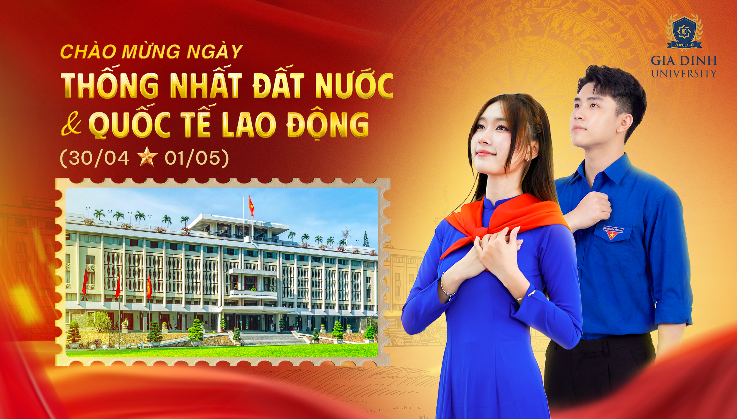 Nhân dịp kỷ niệm Ngày Thống nhất đất nước (30/4) và Ngày Quốc tế Lao động (1/5), Trường Đại học Gia Định (GDU) trân trọng gửi lời chúc đến Quý Doanh nghiệp, Quý Thầy Cô, các bạn Sinh viên và Gia đình một kỳ nghỉ lễ ý nghĩa, nhiều niềm vui và luôn giữ trong tim niềm tự hào dân tộc.