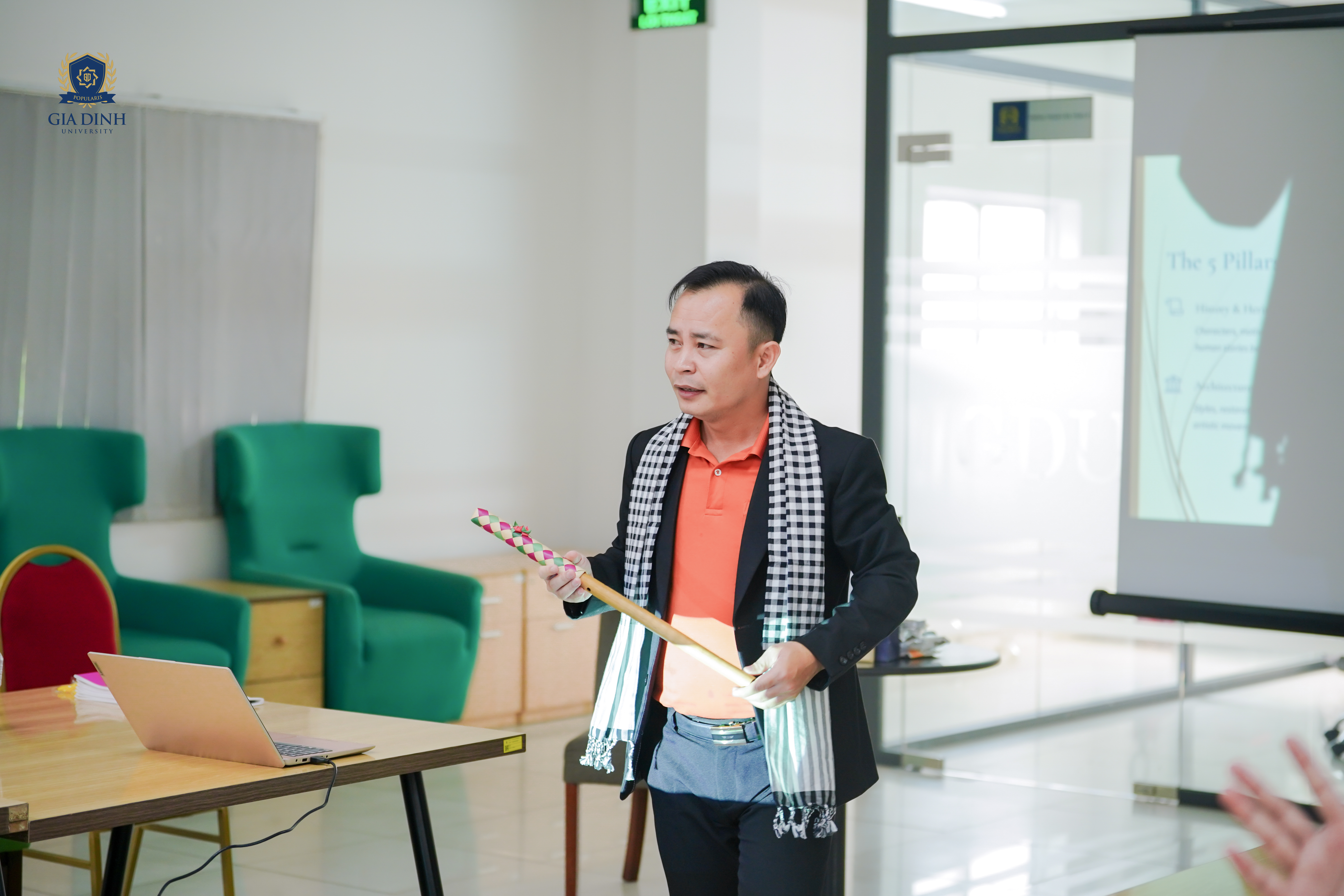 Đồng hành cùng chương trình là ThS Đoàn Chuẩn Võ Trường An - diễn giả khách mời có nhiều kinh nghiệm trong lĩnh vực du lịch. Tại buổi chia sẻ, diễn giả đã mang đến góc nhìn toàn diện về nghề hướng dẫn viên khách quốc tế, từ yêu cầu chuyên môn đến những kỹ năng mềm cần thiết.