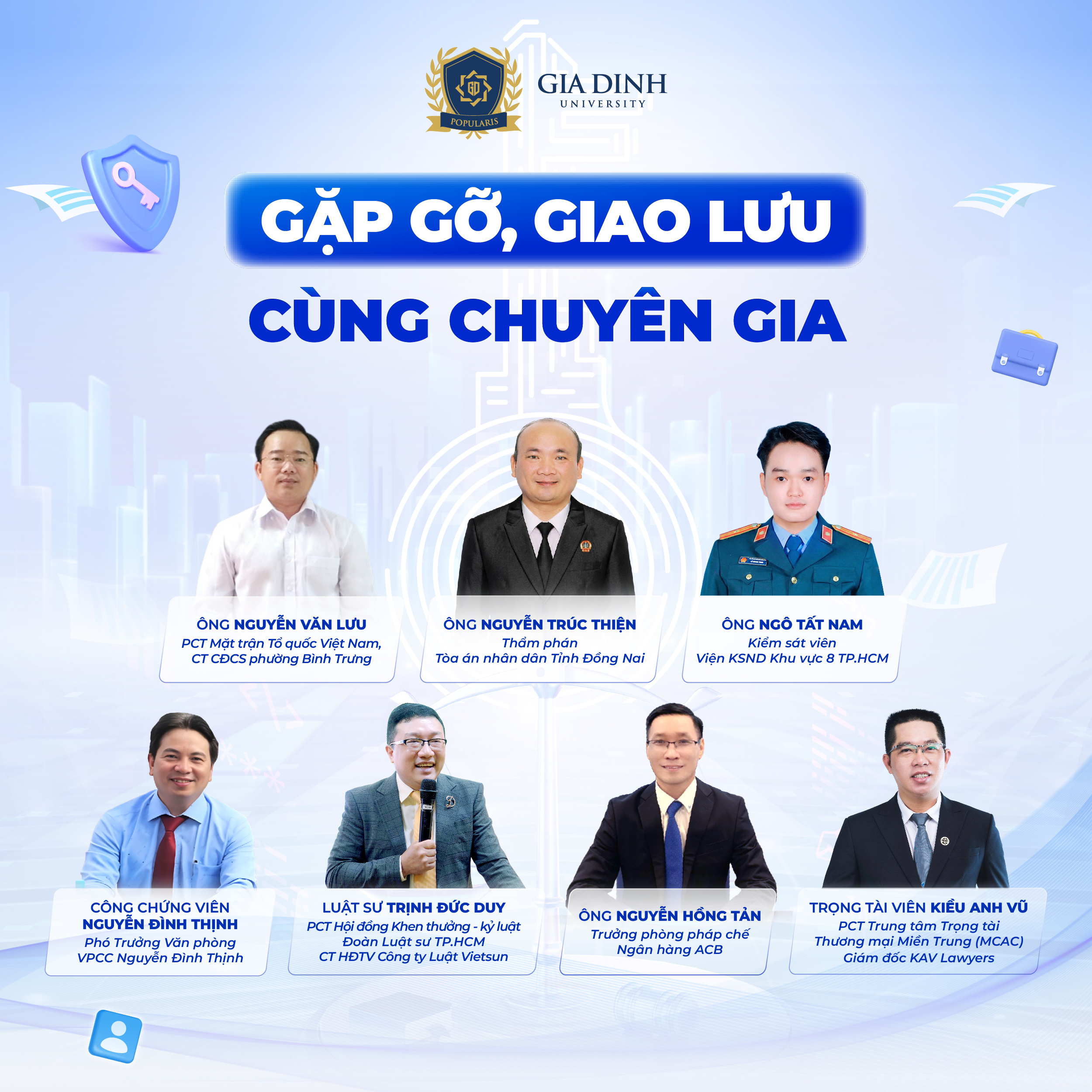 LAW GEARS 2025 là dịp gặp gỡ, giao lưu giữa sinh viên GDU với 7 chuyên gia hàng đầu, từ khối cơ quan tư pháp đến khối doanh nghiệp và hành nghề luật sư.