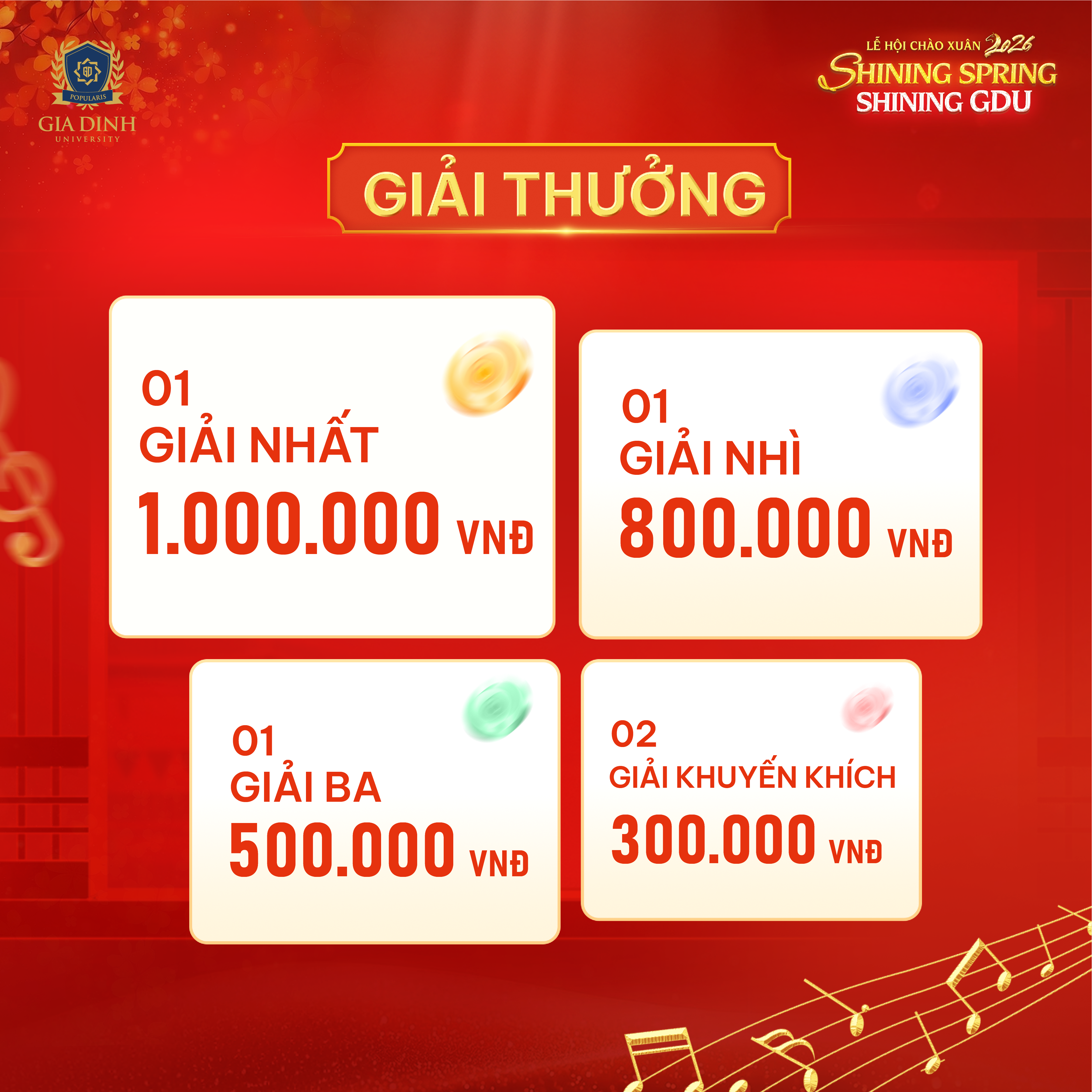 Cơ cấu giải thưởng với những "bao lì xì" đỏ thắm đang chờ đợi các GDUers may mắn nhất.