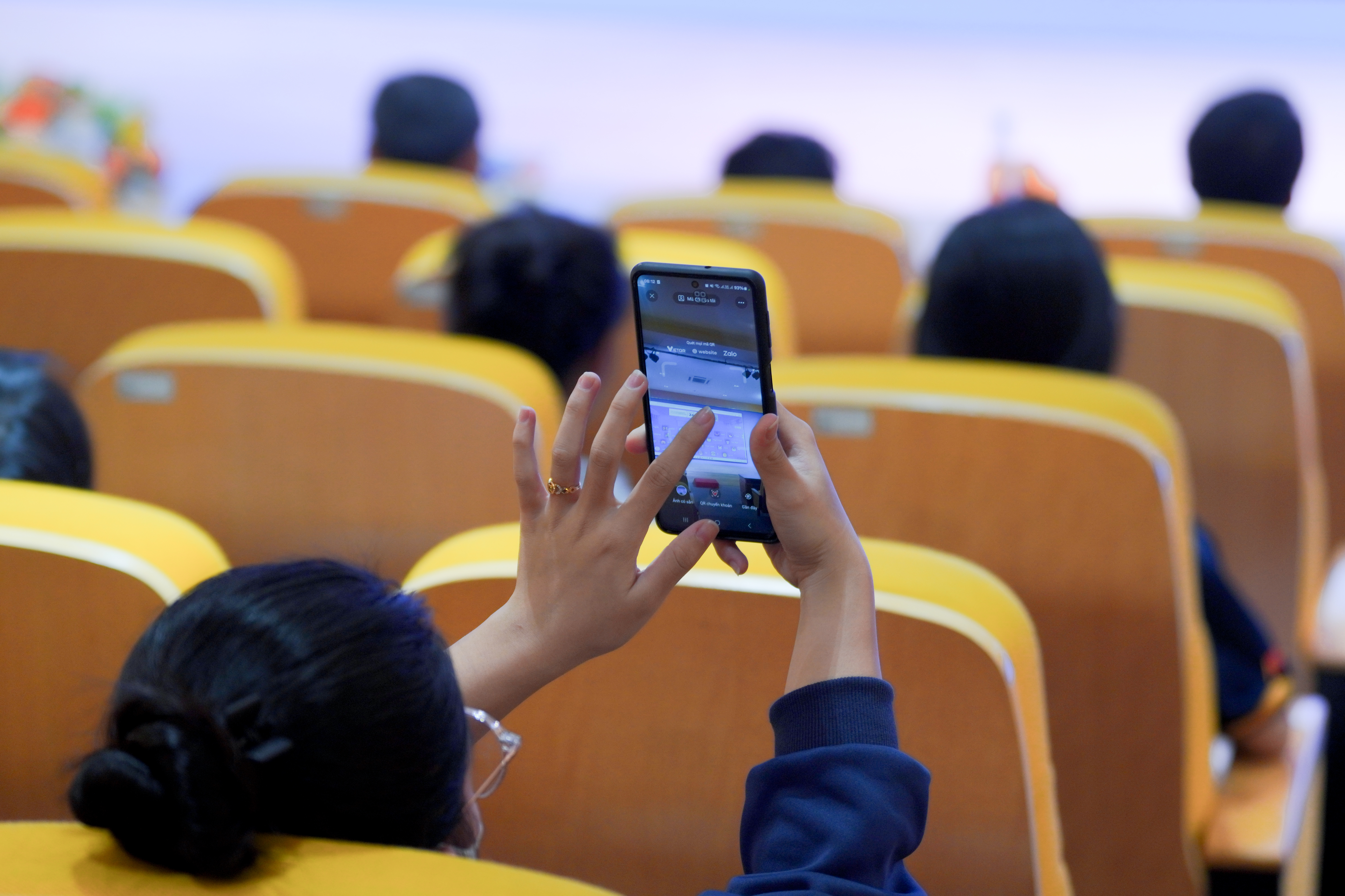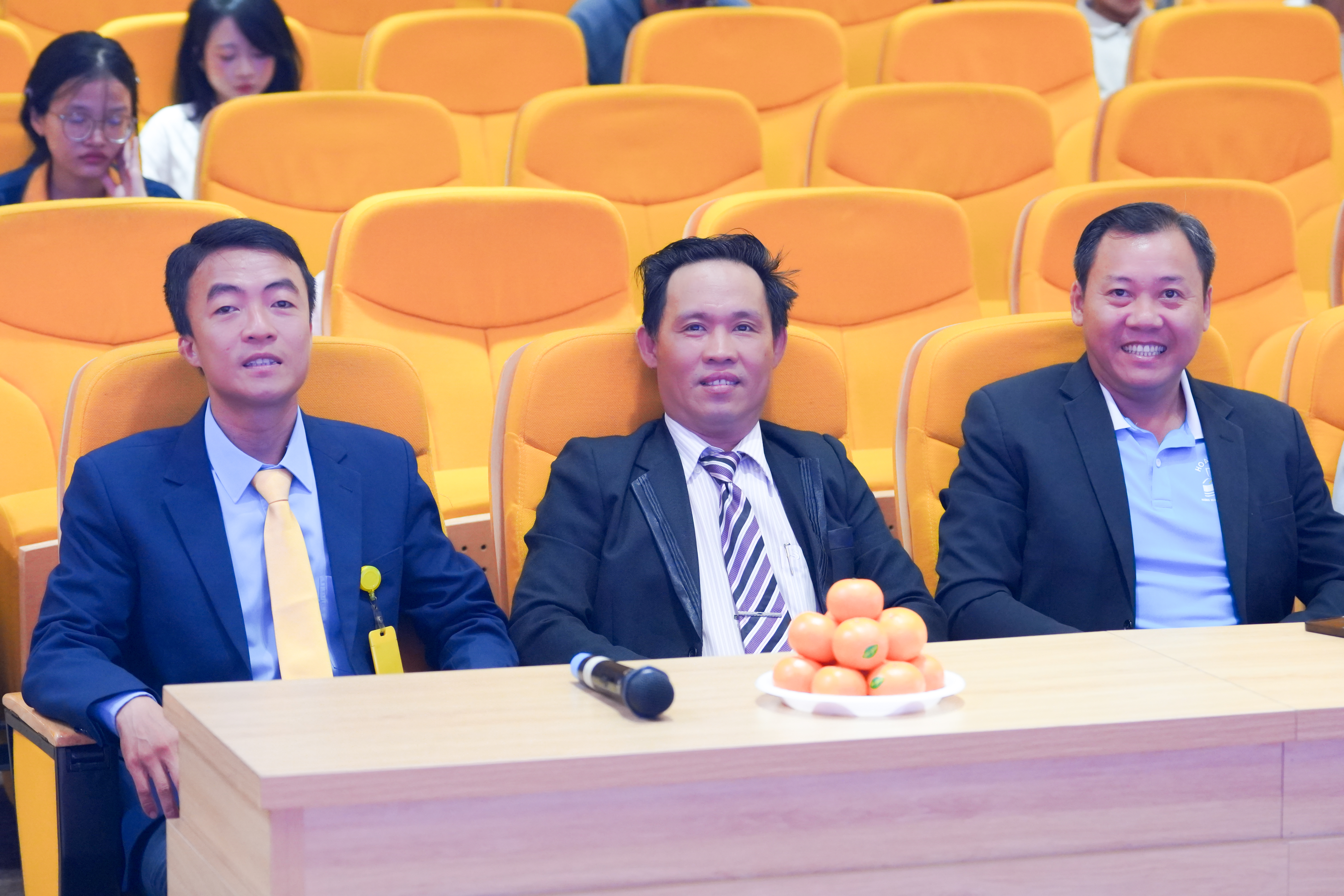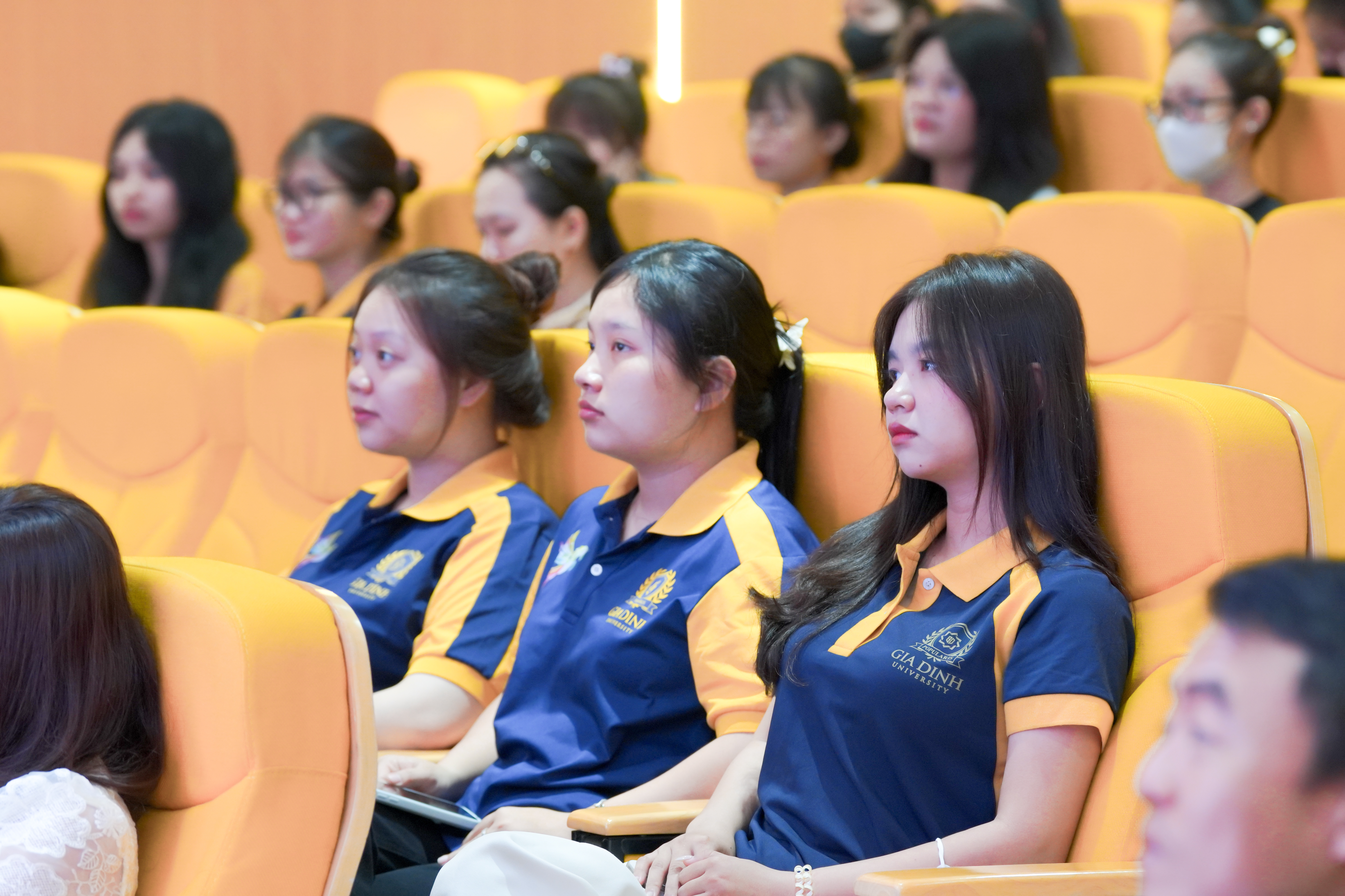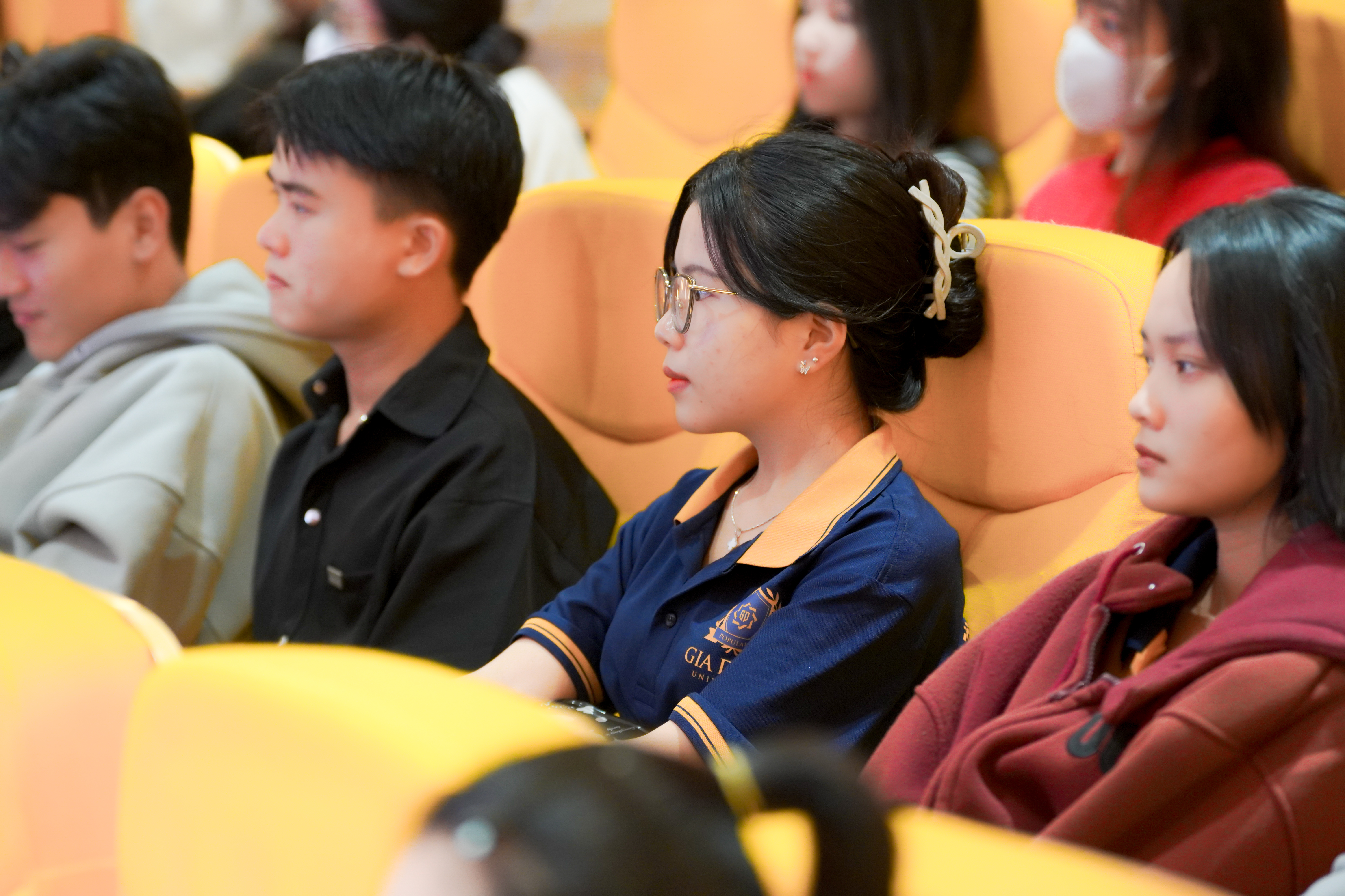 Sinh viên chăm chú lắng nghe và theo dõi nội dung chương trình.