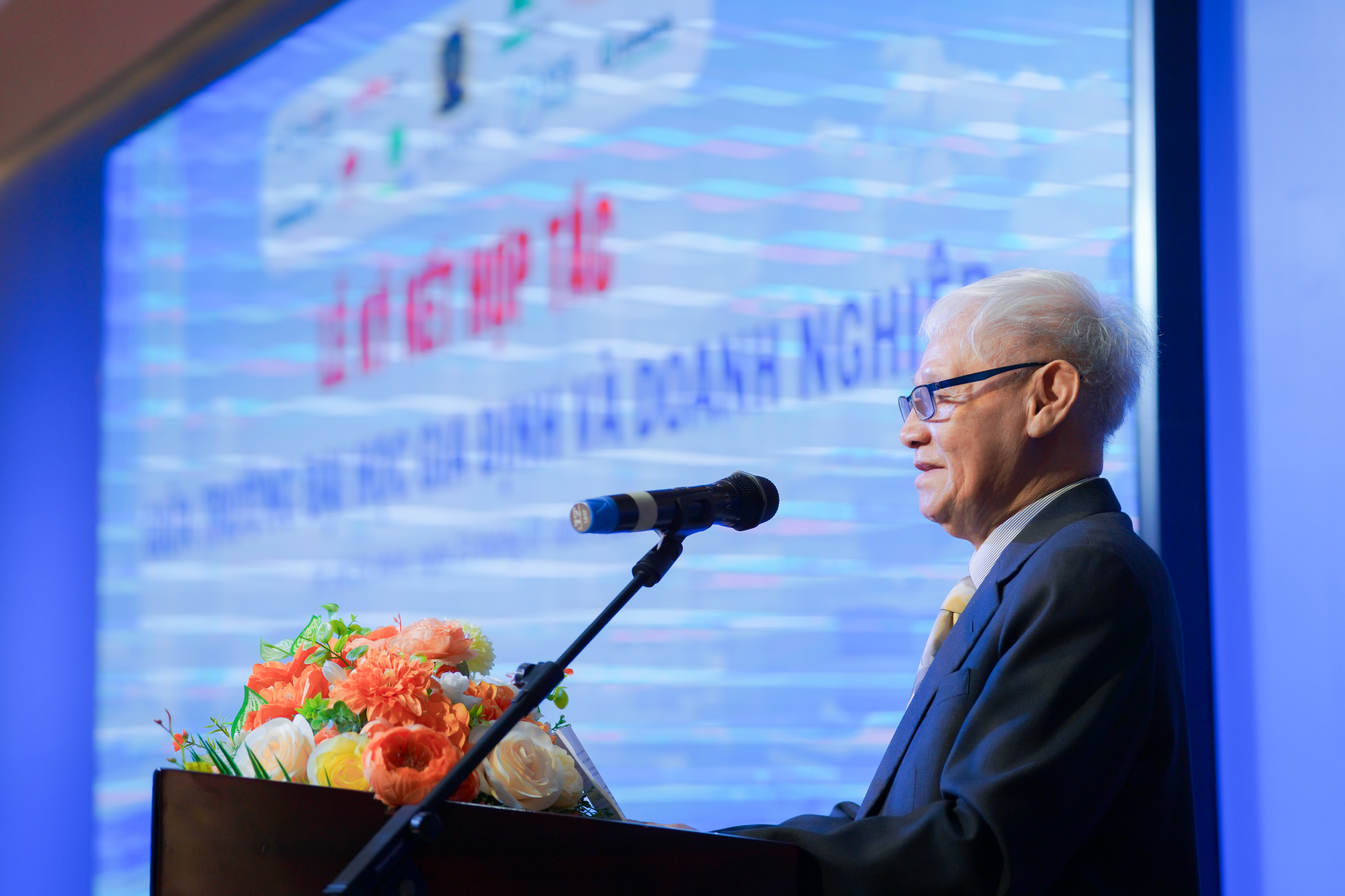 Lãnh đạo Nhà trường chia sẻ định hướng hợp tác đào tạo và nghiên cứu cùng doanh nghiệp.