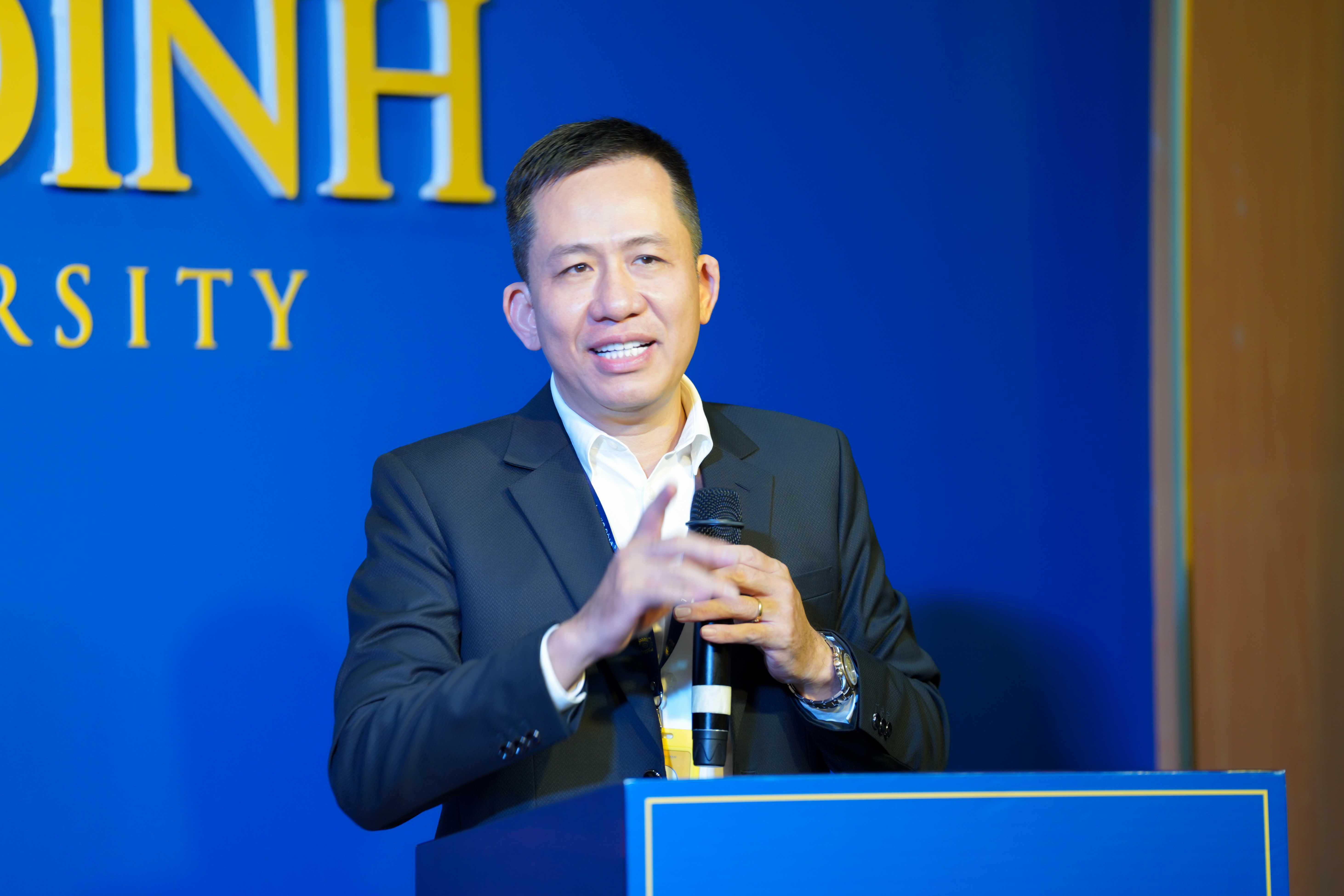 Đại diện Khoa Quản trị - Marketing nhấn mạnh vai trò của Câu lạc bộ trong việc gắn kết đào tạo thực tiễn và đáp ứng nhu cầu doanh nghiệp.
