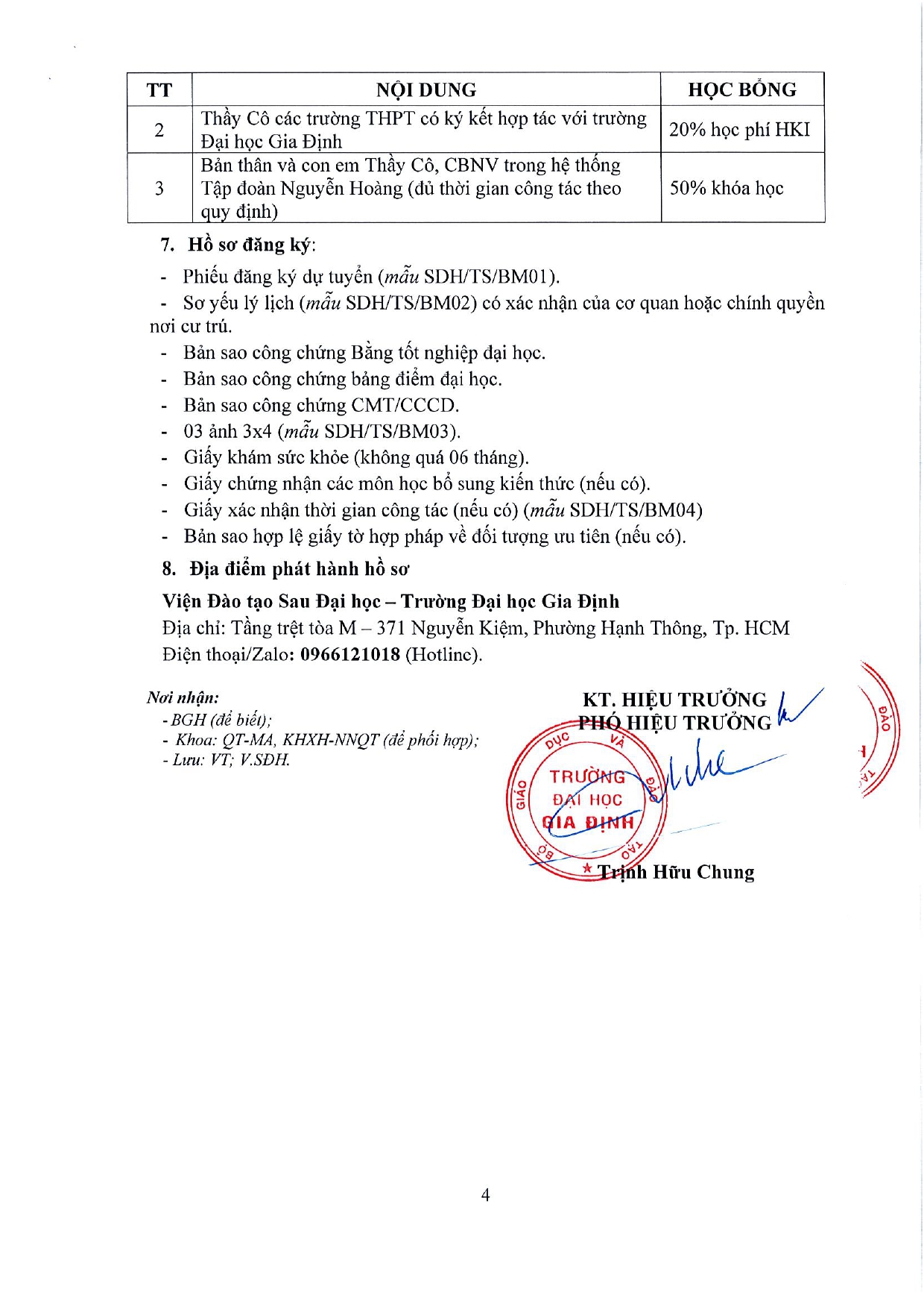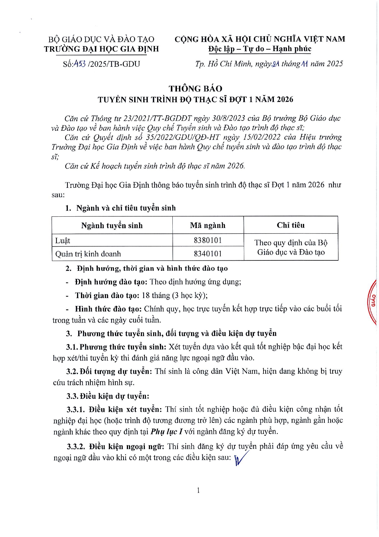 Trường Đại học Gia Định tuyển sinh trình độ thạc sĩ đợt 1 năm 2026