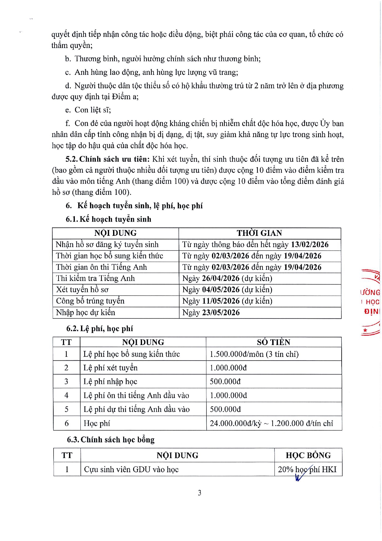 Năm 2026, GDU tuyển sinh trình độ thạc sĩ đối với 2 ngành: