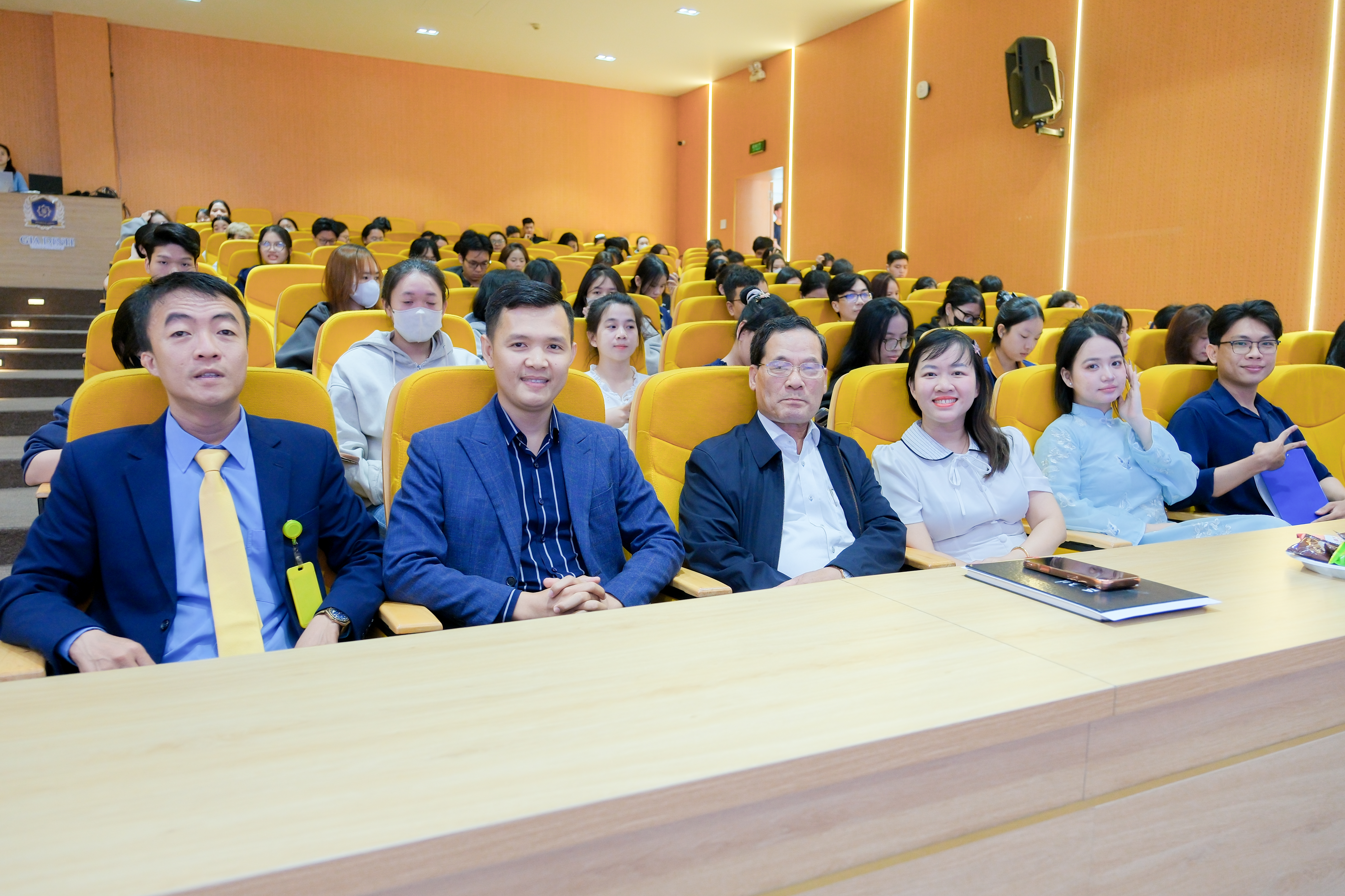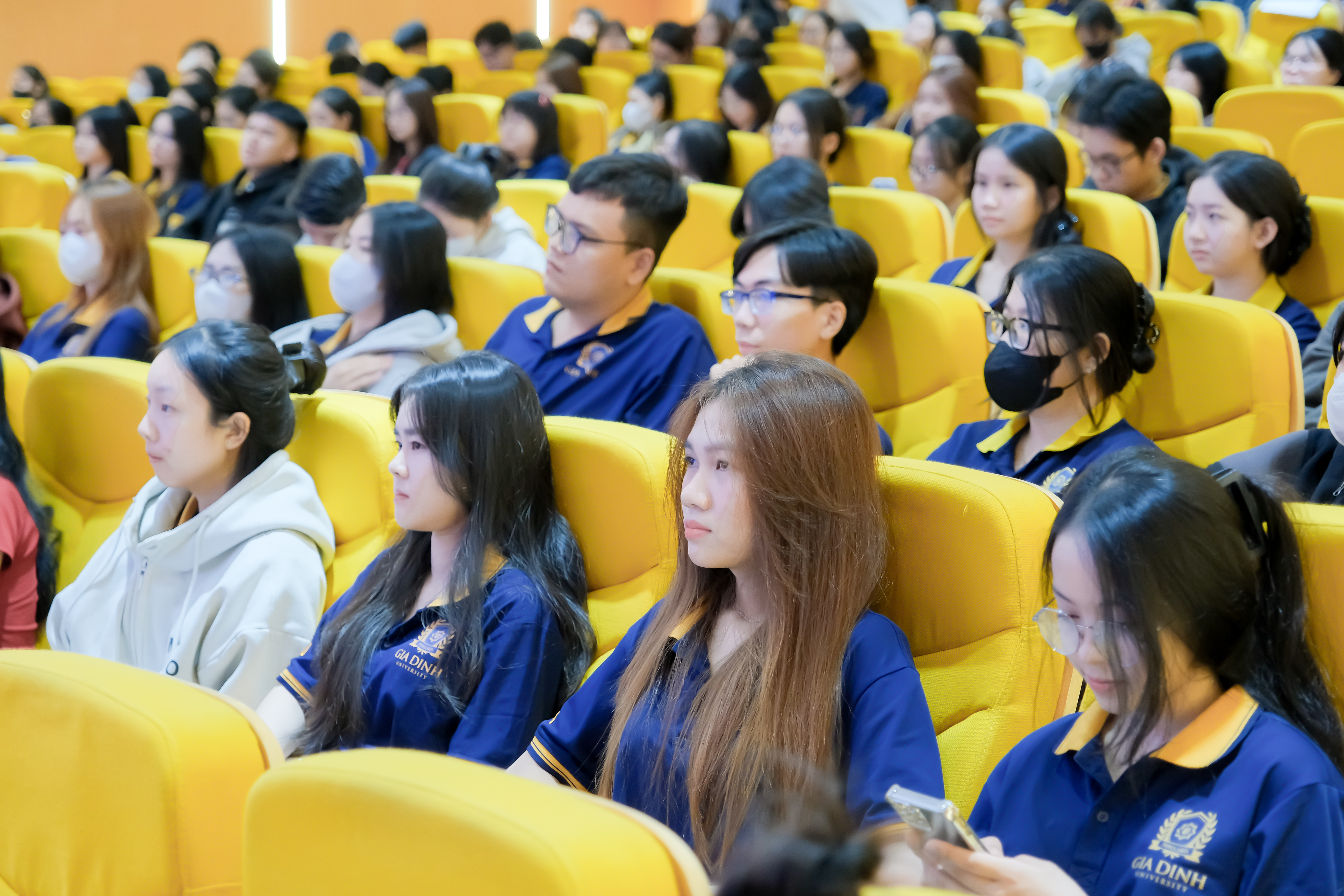 Sinh viên chăm chú lắng nghe phần chia sẻ của diễn giả.