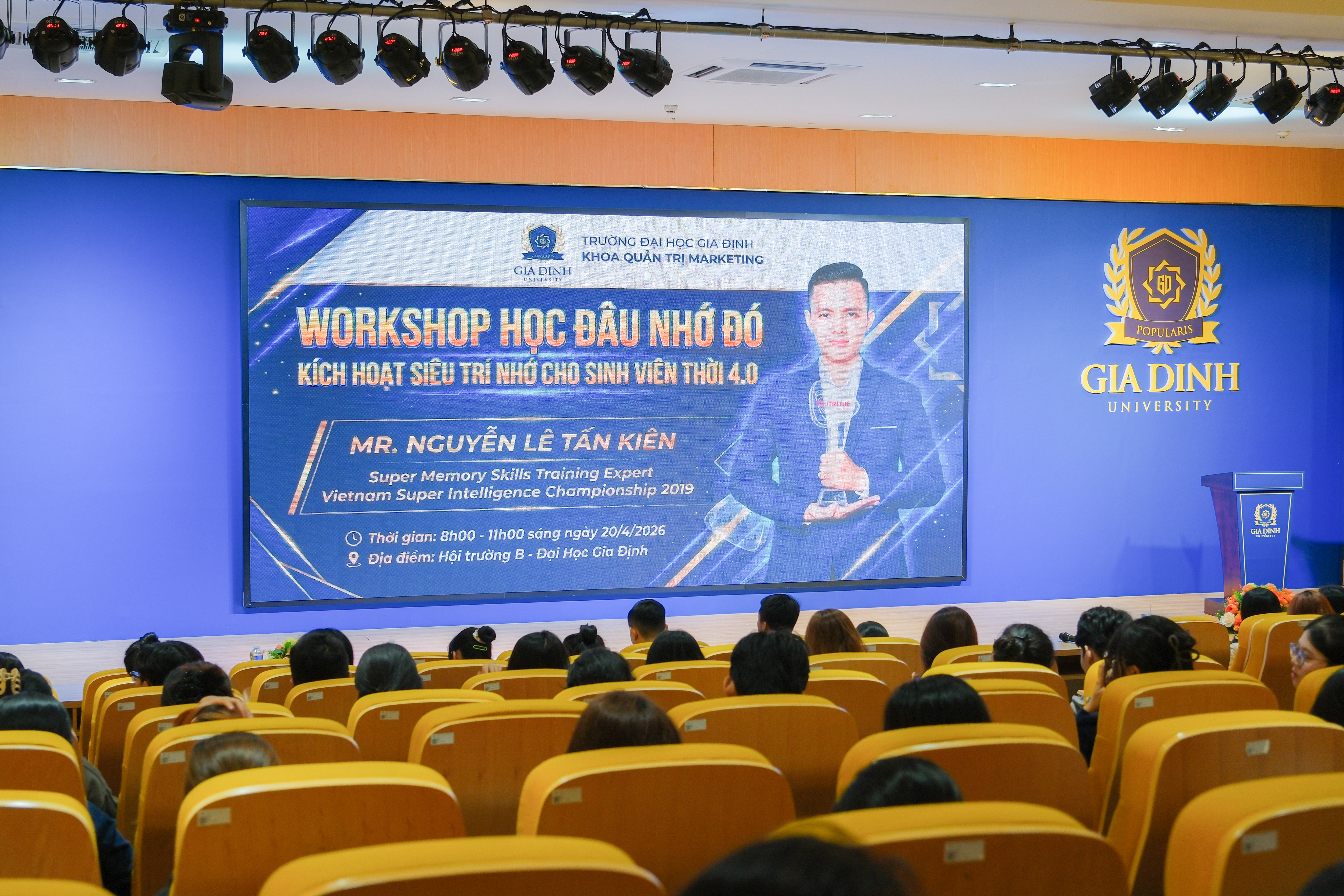 Lượt xem: 5Sáng ngày 20/4/2026, Khoa Quản trị - Marketing, Trường Đại học Gia Định (GDU) đã tổ chức workshop với chủ đề “Học đâu nhớ đó - Kích hoạt siêu trí nhớ cho sinh viên thời 4.0”, thu hút sự tham gia của đông đảo sinh viên quan tâm đến việc cải thiện phương pháp học tập và nâng cao hiệu quả ghi nhớ trong bối cảnh giáo dục hiện đại.
